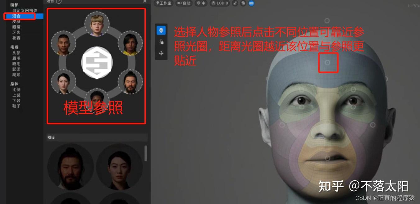 8.开始编辑这里就按喜好自己随便捏吧,唯一解释一下的就是这个混合模式,这里可以从自带模型中选取多人进行面部参照;