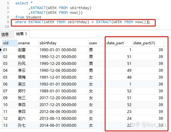 EXTRACT(field_ _FROM source),extract函数从日期或时间的数值里抽取子域,比如年、小时等。source必须是一个timestamp、time或interval类型的值表达式(类型为date的表达式转换为timestamp,因此也可以用)。field是一个标识符或者字符串,它指定从源数据中抽取的域。extract函数返回类型为double precision的数值。