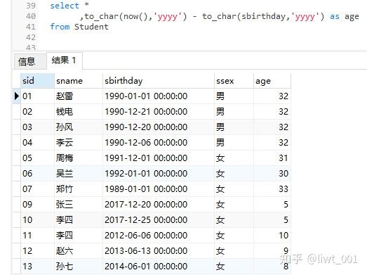 insert into Student values('12' , '赵六' , date '2013-06-13' , '女');