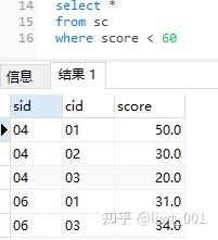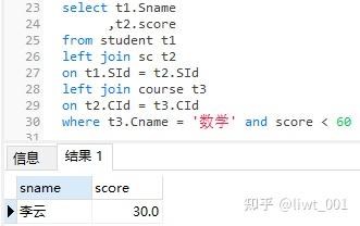 11、查询课程名称为「数学」,且分数低于 60 的学生姓名和分数 8