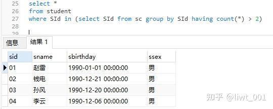 15、查询课程编号为 01 且课程成绩在 80(含80) 分以上的学生的学号和姓名 11