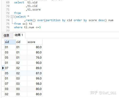 18、查询不同课程 但成绩相同的 学生的学生编号、课程编号、学生成绩 12
