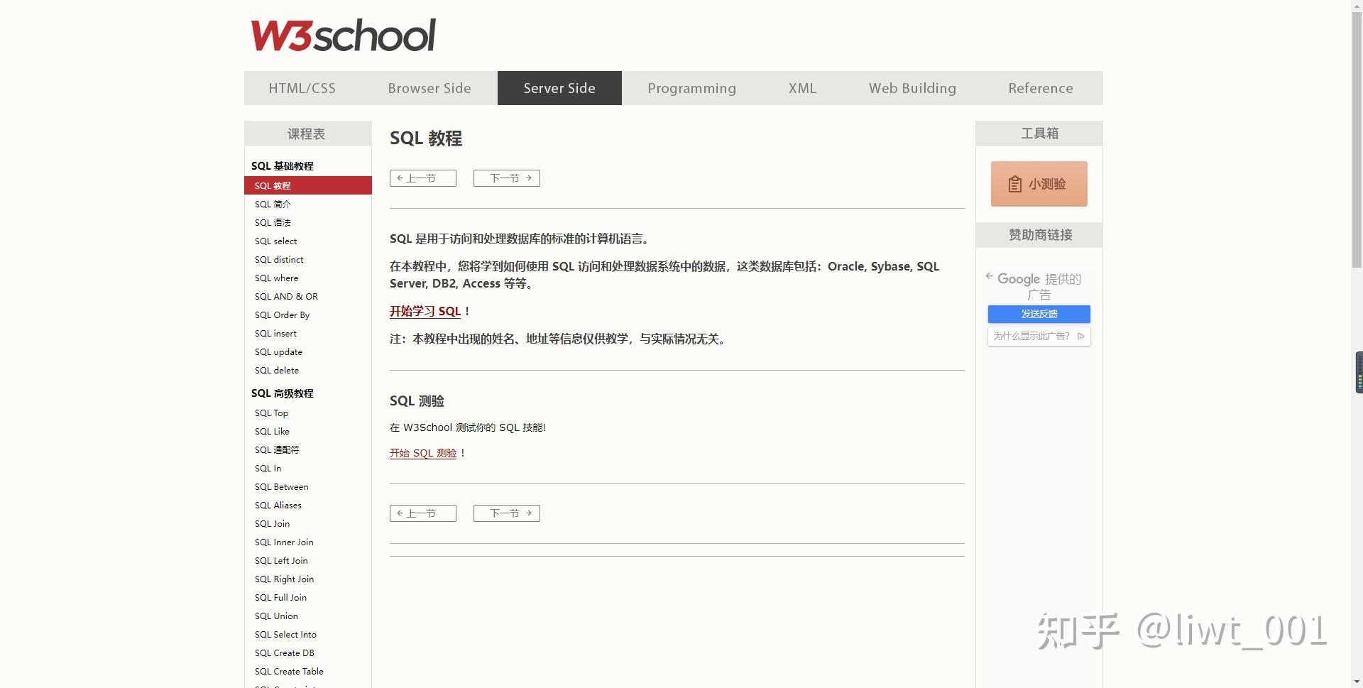 4)w3school :http://www.w3school.com.cn/sql/index.asp
