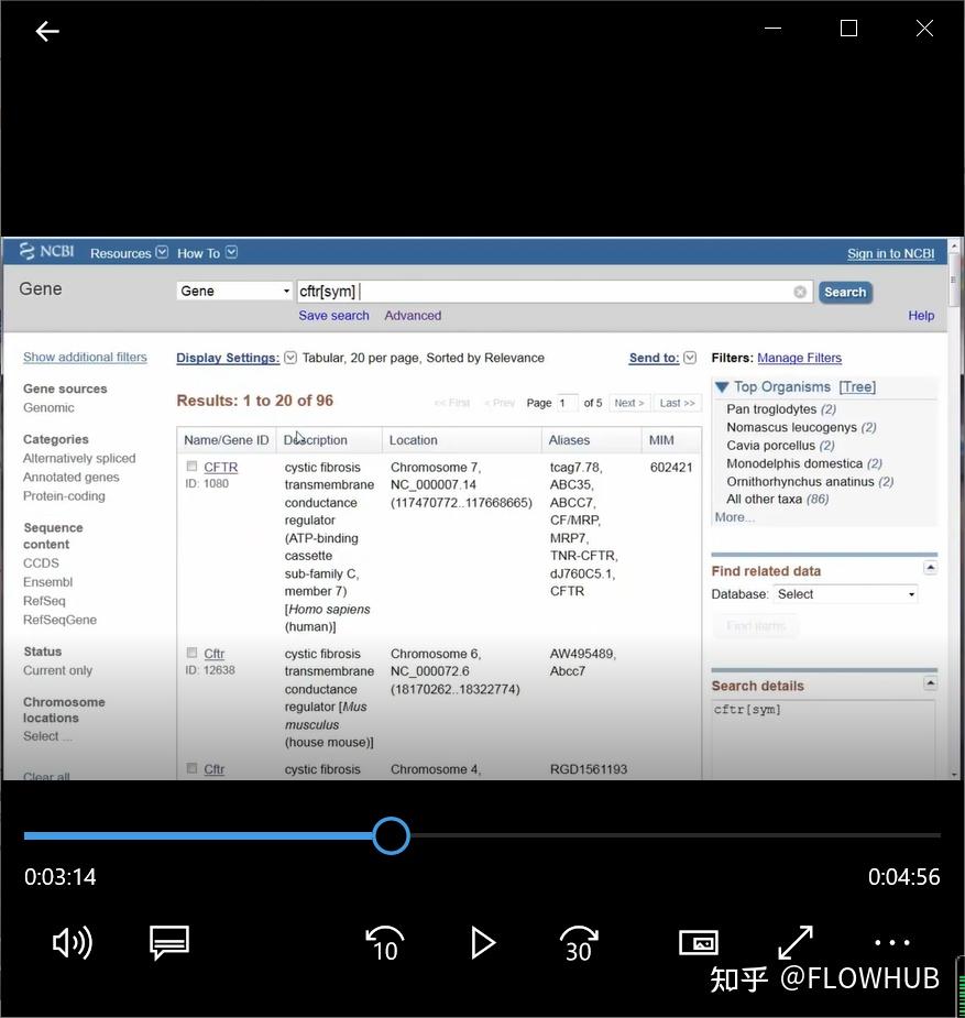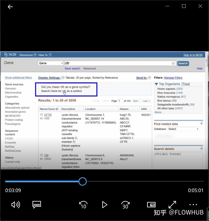 我们看看CFTR,与囊性纤维化相关的基因。目前,有近3060个个体基因记录引用了CFTR,其中353个来自人类。尽管这些记录是按与搜索词的相关性排序的,但要确保拥有正确的遗传记录,请使用基因的官方符号搜索数据库。