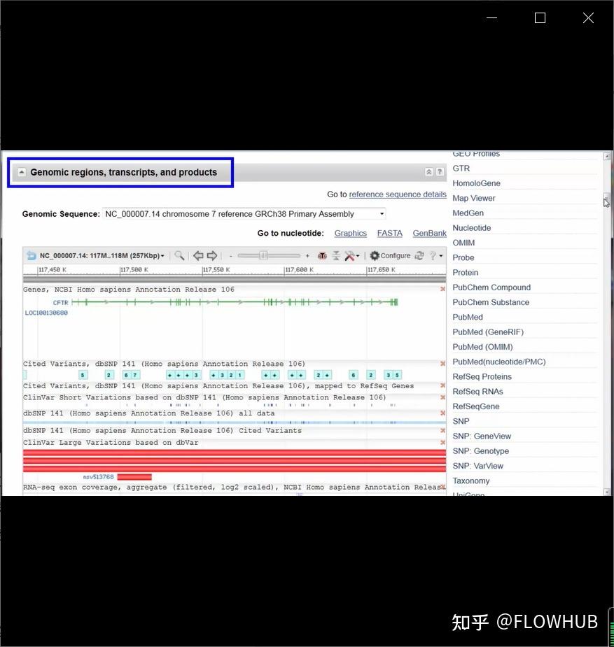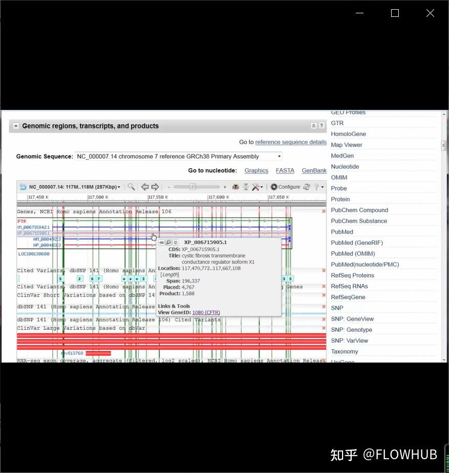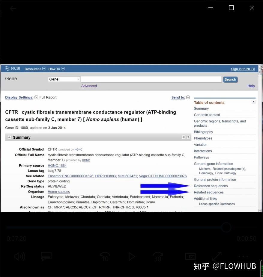 第一个摘要部分以人类基因组组织基因命名委员会的公共数据库中定义的官方符号和基因全名开头。然而,正如您从“alsoknowas”列表中看到的那样,并不是每个人都在他们的出版物中使用过该官方符号。该基因编码一种蛋白质,摘要包括有关该蛋白质如何发挥作用以及基因突变的潜在问题的信息。RefSeq状态为“已审核”。因此,在此记录中,CFTR基因序列是一个带注释的参考序列,由NCBI 工作人员策划,具有唯一标识符,可作为医学、功能和比较研究的基线。