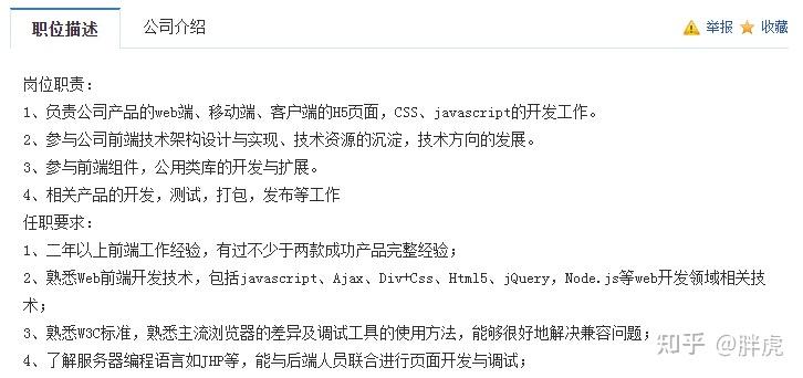 第四、至少要会一门后台编程语言。职业的特殊性决定了我们需要跟后端工作者频繁的沟通。如果只顾页面实现,不考虑后台,写出来的页面也有一部分是废弃代码,在后台进行数据交互的时候用不了。还有一方面就是从招聘信息可以得知,现在几乎所有公司前端开发岗位都明确要求会后台语言,在实际工作中可能也要做客户端和服务器端之间的数据交互等。
