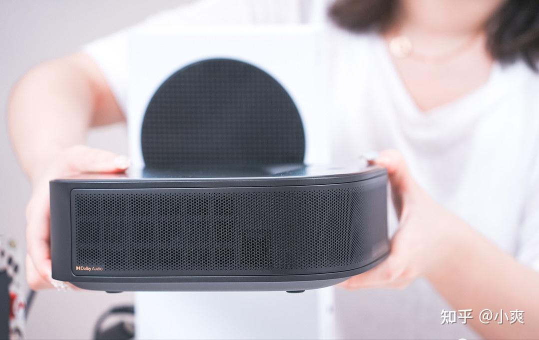 与传统的投影仪不同,超短焦投影仪的音箱位于机身尾端两侧,可以营造出比较立体的音效表现。声音扩散出之后直接面向人的方向,在看电视的时候,电视画面和声音传来的方向都是来自同一个方向。音画同向,没有那种画面在前,声音在后的割裂感。