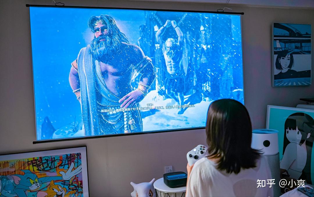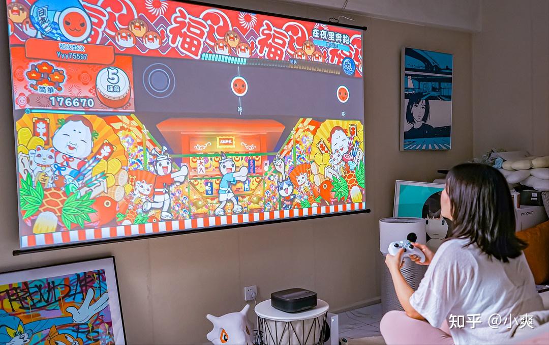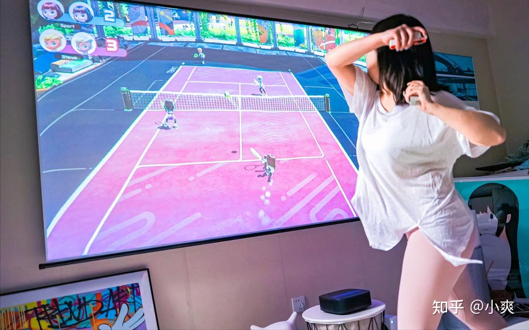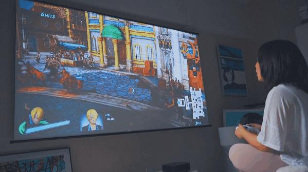 如果室内空间足够的话,你还可以将投影仪向后移动一点,获得更大的屏幕。SWITCH的日常输出分辨率在1080P,正好和投影仪的分辨率一致,搭配SWITCH投影可以获得非常不错的游戏体验。