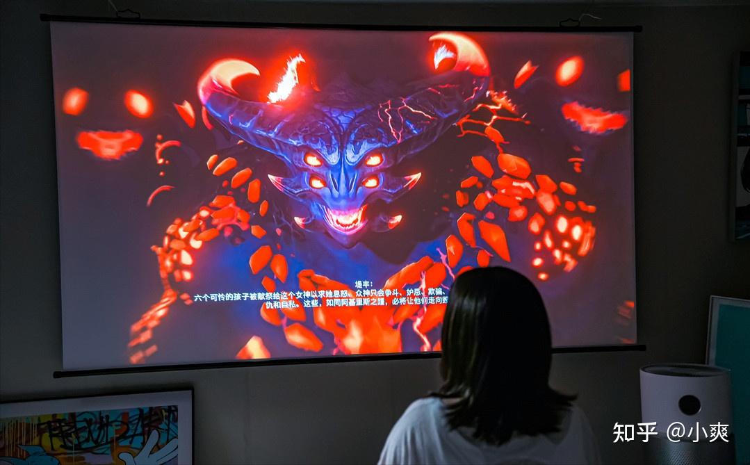 常规的投影仪比较怕光线干扰。在幕布和屏幕之间如果有很多光源的话,画面也会受到一些影响。超短焦激光投影仪距离幕布更近。比起普通投影仪来说,也更不容易受到外界杂光干扰。室内开启台灯、氛围灯时画面几乎不受影响,能够获得不错的使用体验。可以在一个更明亮的环境下玩游戏、欣赏电影了。