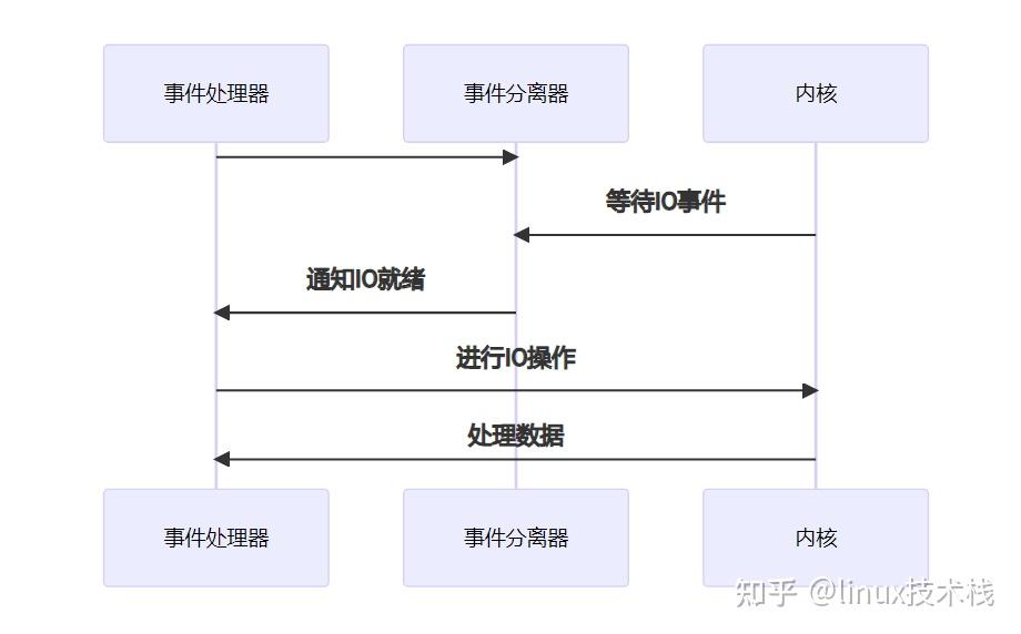 - 事件处理器完成事件的读操作,处理读到的数据,注册新的事件,然后返还控制权。