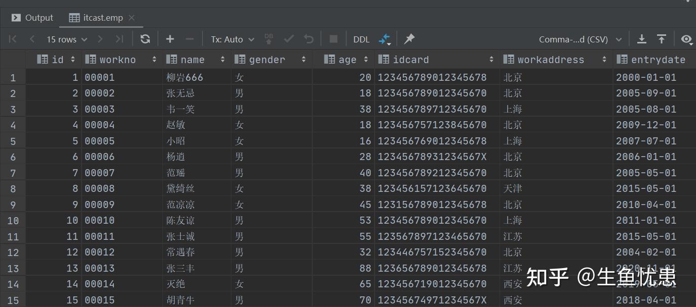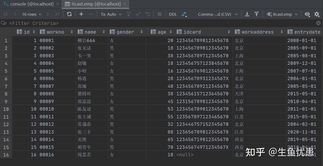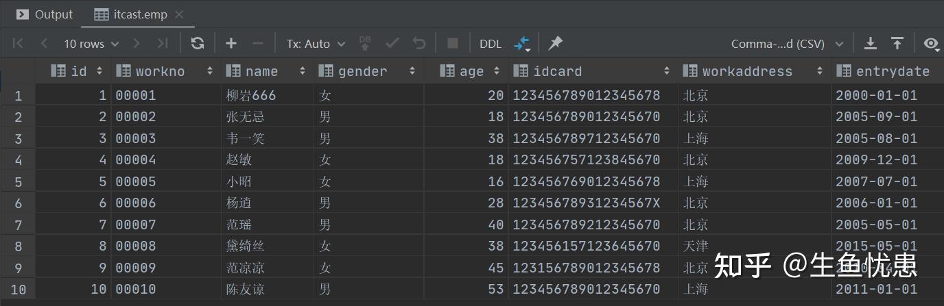 为了更直观的观察数据表,从这部分开始在datagrip上进行操作。