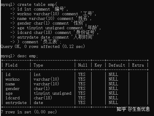 可以用alter关键字对表进行修改,先创建一个名为emp的员工信息表: