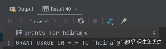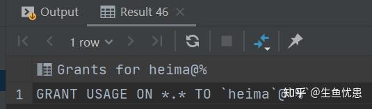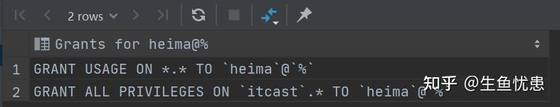 查询权限,查询 &#39;heima&#39;@&#39;%&#39; 用户的权限