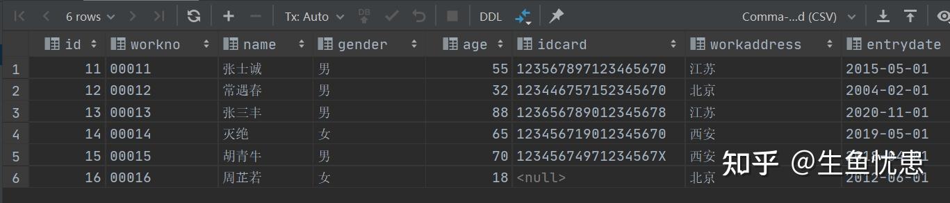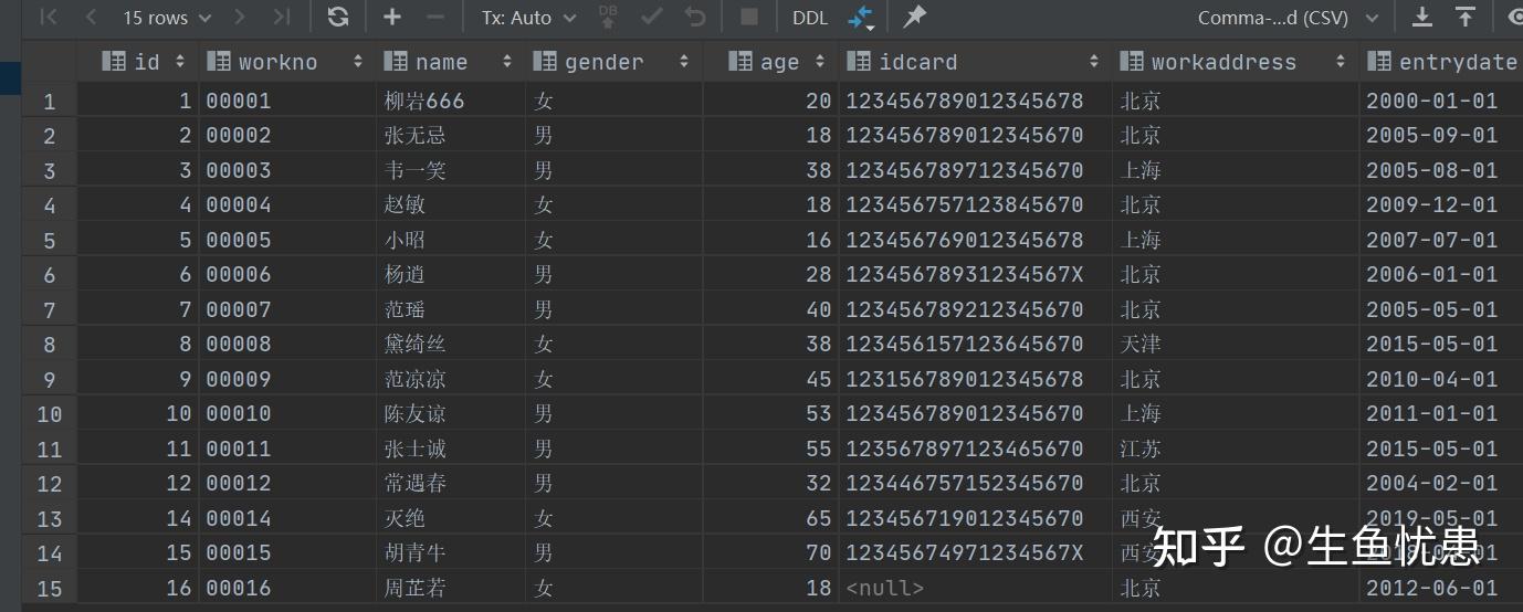 insert into employee(id,workno,name,gender,age,idcard,entrydate)