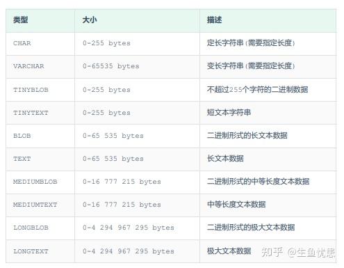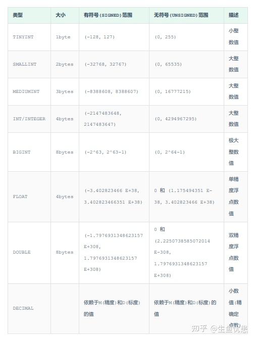 建表时需要指定每个字段的字段类型,常用的字段类型主要分为3类:数值类型、字符串类型、日期时间类型。