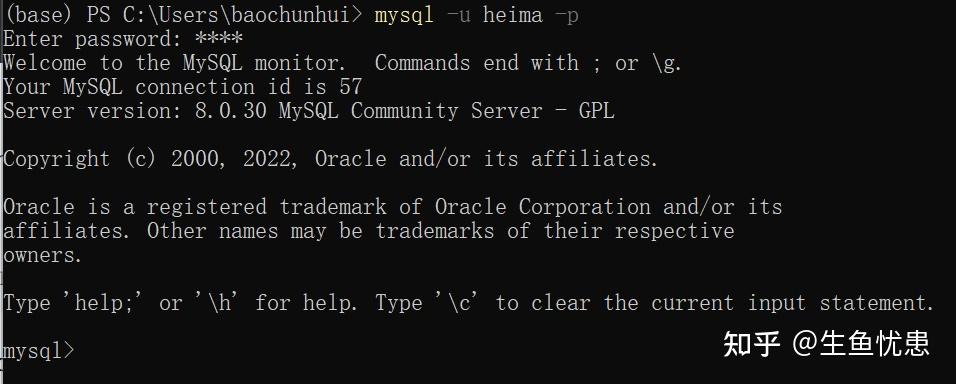alter user &#39;heima&#39;@&#39;%&#39; identified with mysql_native_password by &#39;1234&#39;;这里就是在sql中写mysql_native_password,不是写本机密码,执行成功后打开终端验证能否用用户名:heima密码:1234 登录
