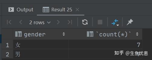where是分组之前进行过滤,不满足where条件,不参与分组;而having是分组 之后对结果进行过滤。where不能对聚合函数进行判断,而having可以。执行顺序为where > 聚合函数 > having 。分组之后,查询的字段一般为聚合函数和分组字段,查询其他字段无任何意义。下面看几个例子。