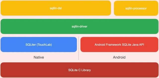 我们加入了 sqllin-processor 模块,它主要包含 KSP 相关的代码,负责注解处理与代码生成。在与 Native 平台交互这边,架构图中添加了 SQLiter 的部分。