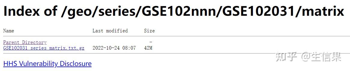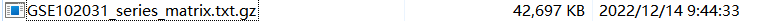 下载matrix文件 ,可以下载到本地,也可以通过文件传输的方式在服务器进行传输wget https://ftp.ncbi.nlm.nih.gov/geo/series/GSE102nnn/GSE102031/matrix/GSE102031_series_matrix.txt.gz(42M)