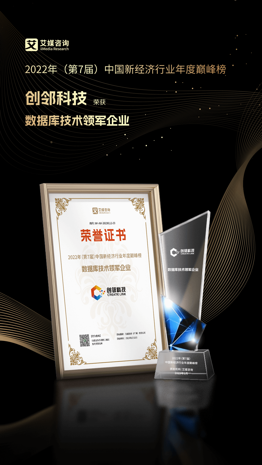 活动现场,“2022年(第七届)中国新经济行业年度巅峰榜”获奖名单隆重揭晓。凭借过硬的技术积累与创新,创邻科技入选「2022新经济行业年度巅峰榜」,荣获「2022年度数据库技术领军企业」称号,一同获得此奖项的还有达梦数据库、南大通用数据库等品牌。