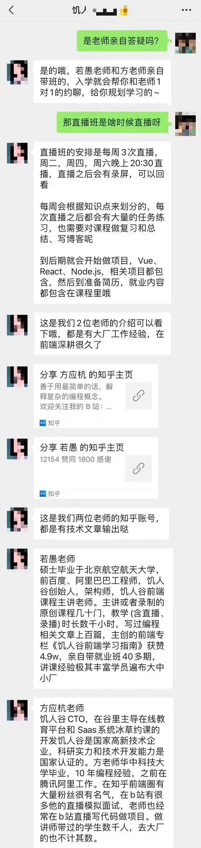 现在市面上大多数机构都做不到这样吧。我当时就是冲着这点,才抱着试一试的心态去学了。所以想学习前端的朋友们不妨试一试,有没有用,听了才知道,觉得不适合咱就退款,老师微信放下面了,有意向的自己咨询~