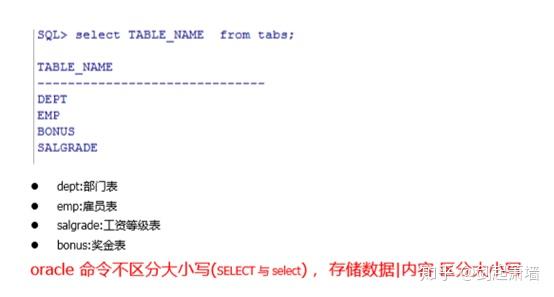 (1)、定义:、表是从属于用户的 ,查询表(用户名.表名),当前用户查询自己的表时,用户名. 可以省略,其他用户查询 别的用户表 ,不能省略,同时必须存在权限。、表是逻辑表(概念表),不是物理表 块(8k) --->区(连续块)-->段(连续区) -->表(多个段) ,数据段不全是表,表一定是数据段。还 有其他段:如索引段。
