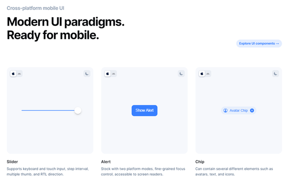 Ionic将按钮、复选框、卡片、内容、报警、标签、工具栏等数百种UI进行了封装,用户下载后即可立刻使用。并且所有UI支持浏览器直接预览、调试,当点击UI控件时,还可以访问原生代码。