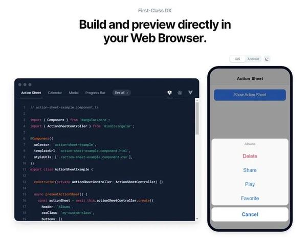 产品方面,Ionic的主打开源产品Ionic Framework具备跨平台、与主流前端框架无缝衔接、预构建主题、封装UI、云端部署等技术优势。